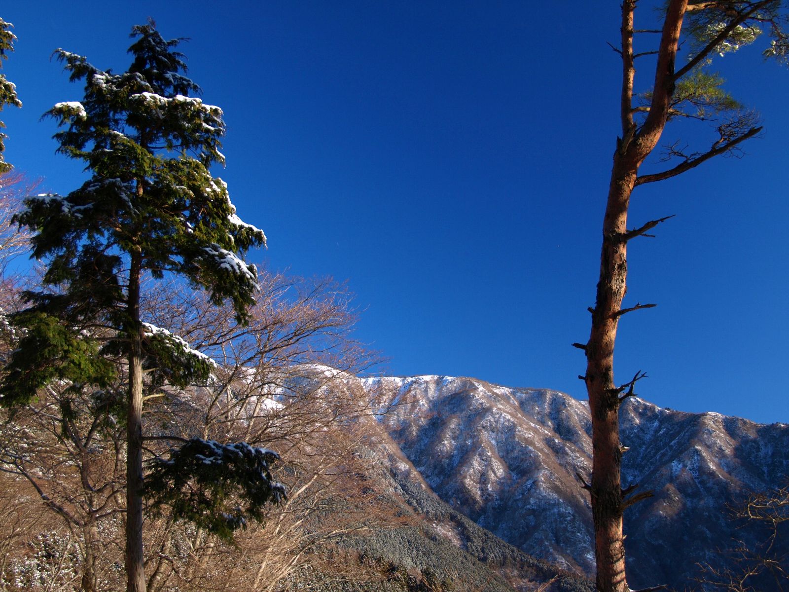 ところどころで視界が開けると雪を被った表尾根や鍋割山稜が見えた。