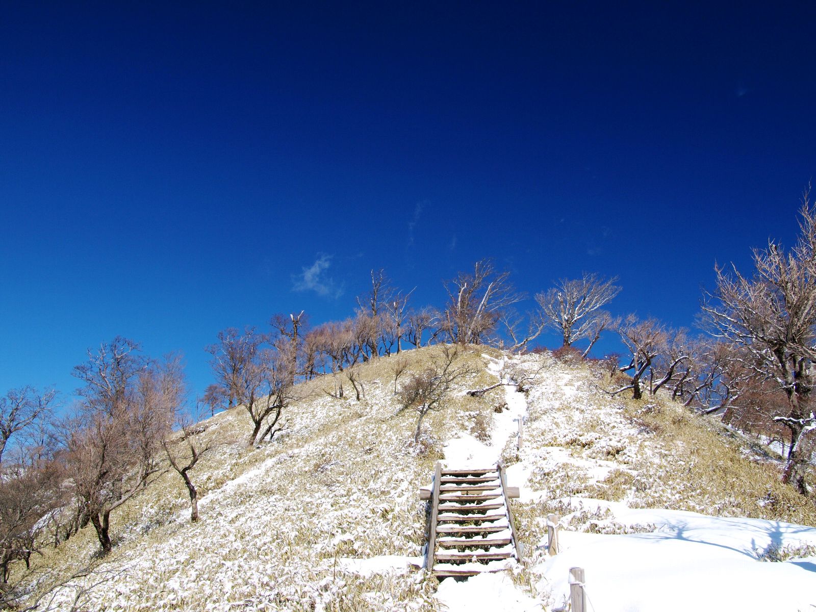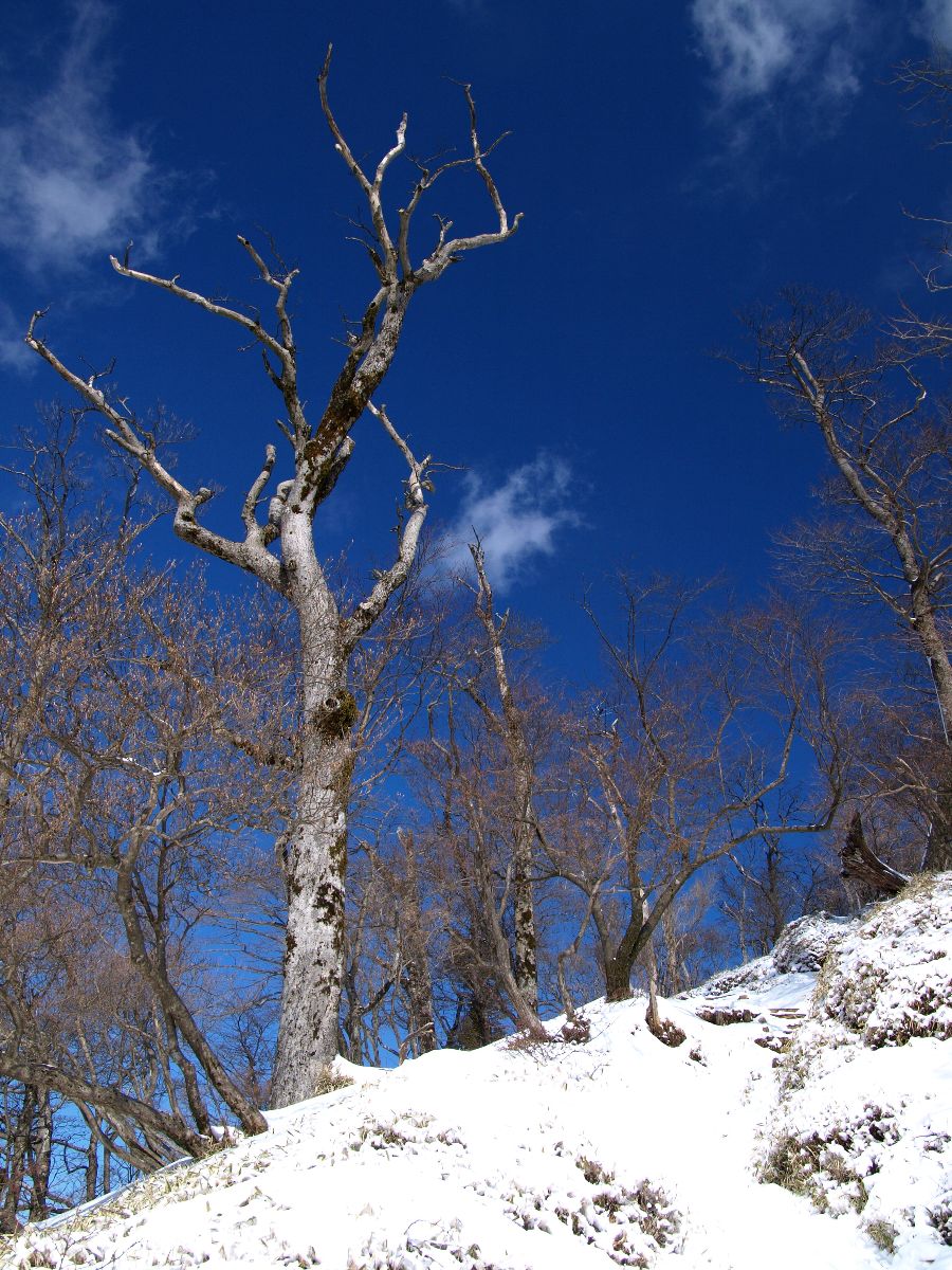 山頂の手前、最後の登りに掛かる金冷シからはいっそう雪が増えた。