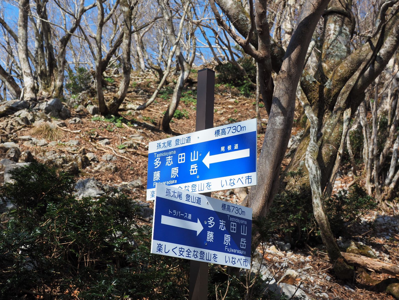 孫太尾根には真新しい看板が随所にあり、ルート上に不安はなかった。