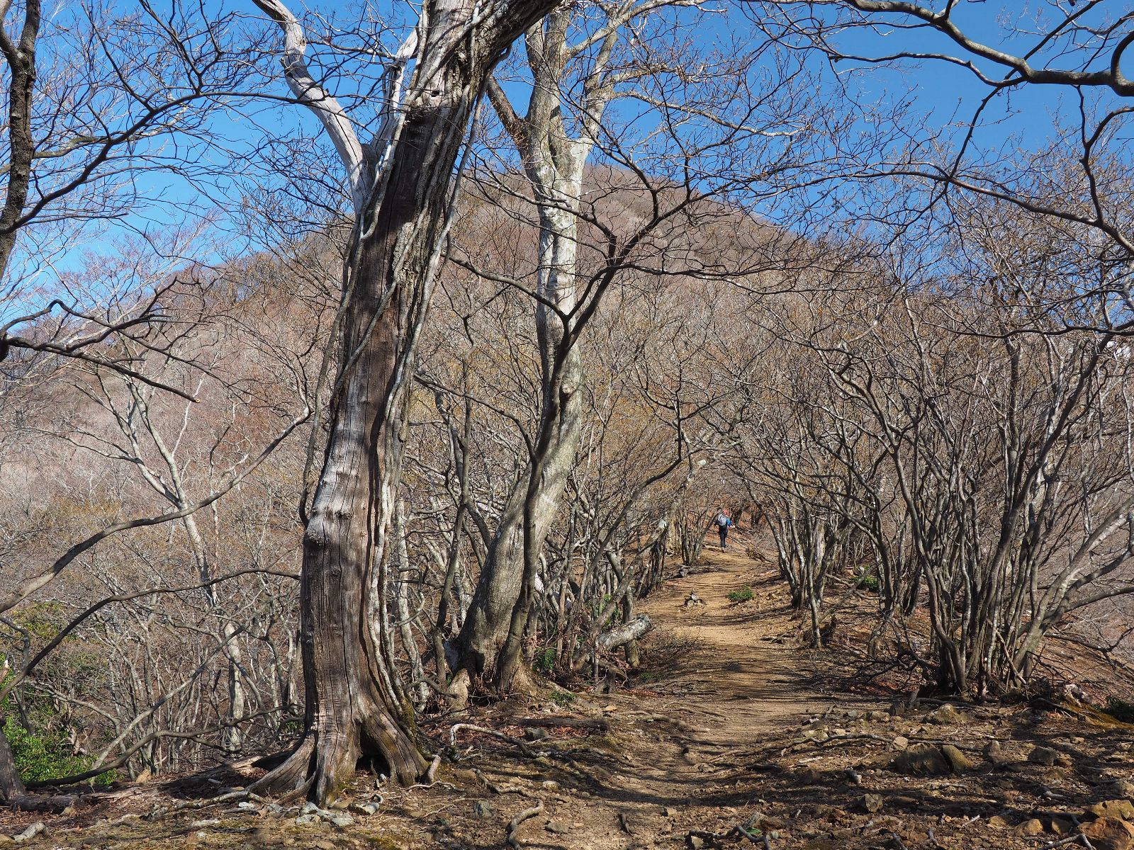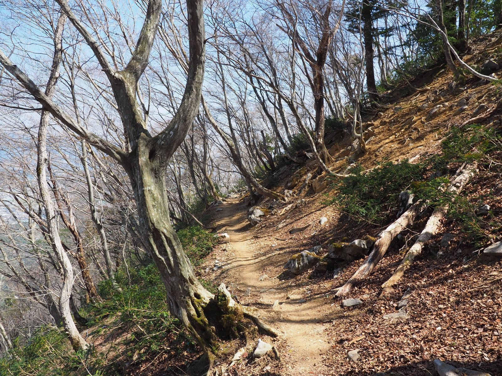孫太尾根に新緑はまだない、木々の間から青空が覗いて気持ちのいい山登り。