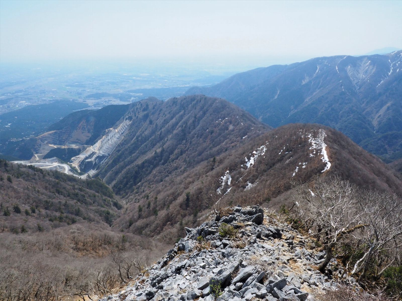 福寿草の咲く急斜面を抜けて、眺望が開ける。