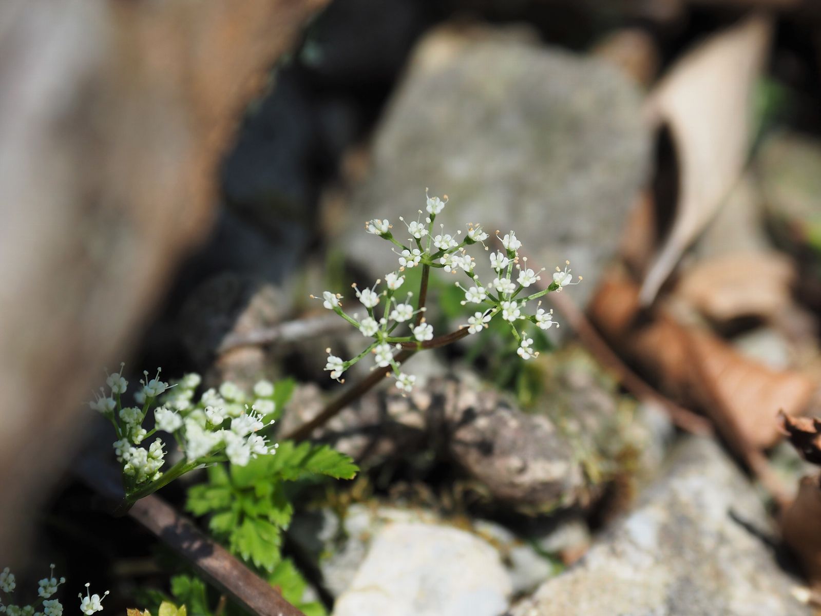 腰を下ろそうとしたら、周囲には可愛らしいセツブンソウが咲いていた。